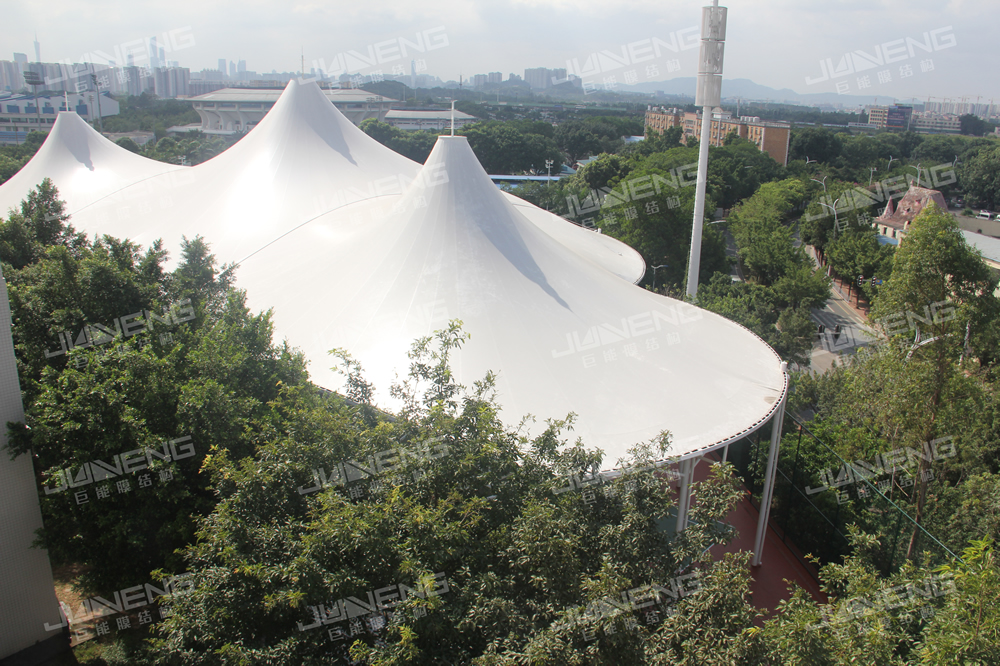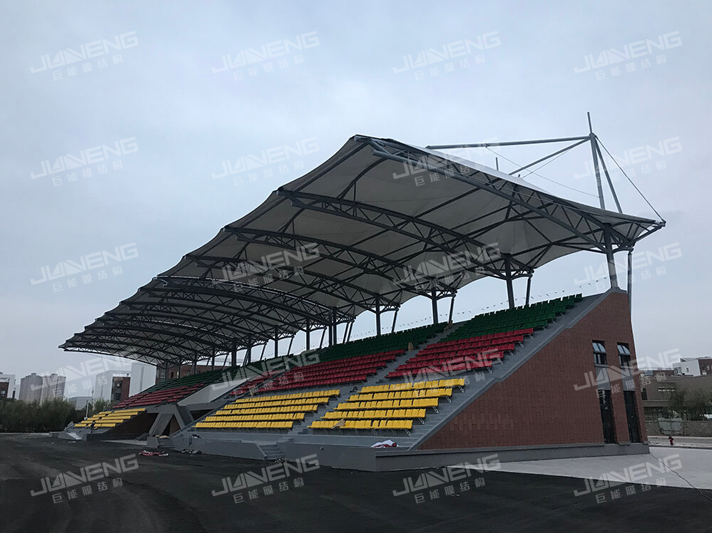 膜結(jié)構(gòu)體育建筑作為替代傳統(tǒng)的新型體育建筑,具有輕便、美觀、搭建快捷等優(yōu)點(diǎn),而對于消費(fèi)者而言,膜結(jié)構(gòu)體育建筑的牢固程度和使用壽命更加重要,尤其是大跨度的膜結(jié)構(gòu)在較為空曠的場地中,能否經(jīng)得住強(qiáng)風(fēng)的侵蝕顯得十分重要,畢竟膜結(jié)構(gòu)的膜材較水泥混凝土實(shí)在太輕,很容易因?yàn)轱L(fēng)力作用出現(xiàn)破損,而想要保證體育場膜結(jié)構(gòu)看臺(tái)抗風(fēng)的能力,設(shè)計(jì)環(huán)節(jié)十分重要。